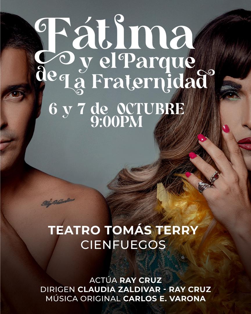 Cienfuegos, Cuba– La obra  Fátima  y el Parque de la Fraternidad, basada en el cuento homónimo de Miguel Barnet, con la actuación de Ray Cruz, quien también la dirige junto con Claudia Zaldívar se presentarán este viernes día 6 y el sábado 7, a las 9:00 pm en la Sala Principal del Teatro Tomás Terry de  esta ciudad.
