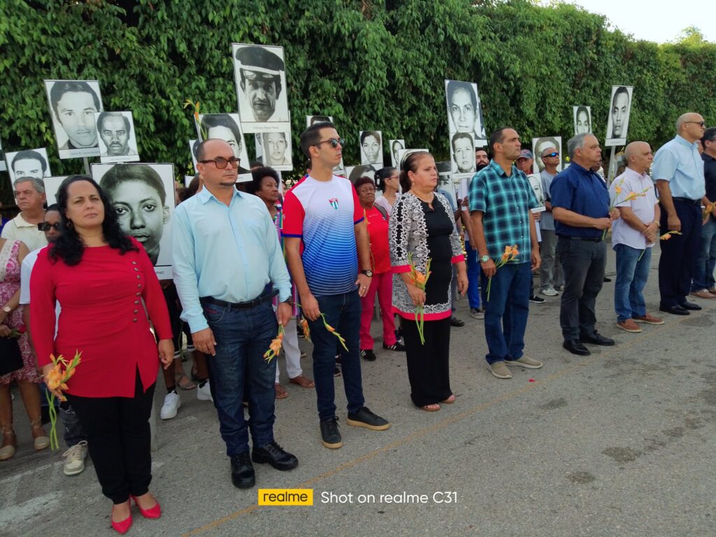 Al solemne acto asistieron Livan Izquierdo Alonso, primer secretario del Partido en La Habana, y Yanet Hernández Pérez, gobernadora de la capital, ambos integrantes del Comité Central, así como Osvaldo Vento Montiller, Presidente del INDER, representantes de la Unión de Jóvenes Comunistas, del Ministerio del Transporte, entre otras organizaciones, así como familiares de las víctimas y el pueblo, quienes se reunieron para rendir homenaje a los caídos en el atroz sabotaje.