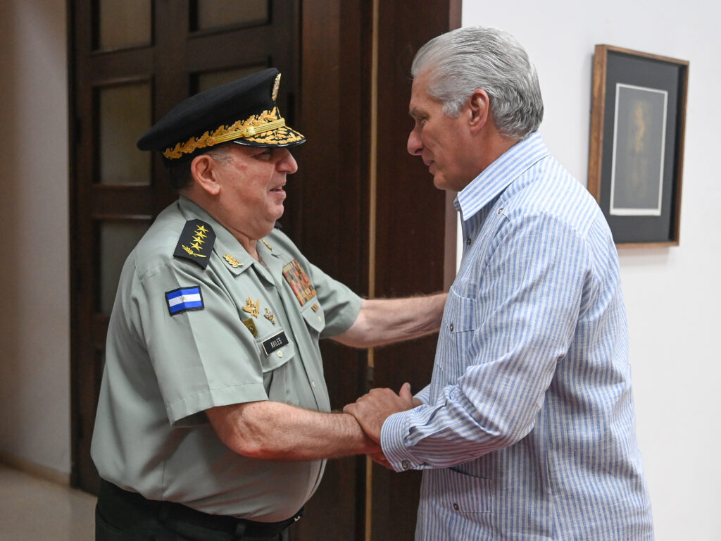 El Primer Secretario del Comité Central del Partido y Presidente de la República, Miguel Díaz-Canel Bermúdez, sostuvo un cordial encuentro en el Palacio de la Revolución, con el General de Ejército, Julio César Avilés Castillo, Comandante en Jefe de las Fuerzas Militares del Ejército de la República de Nicaragua.