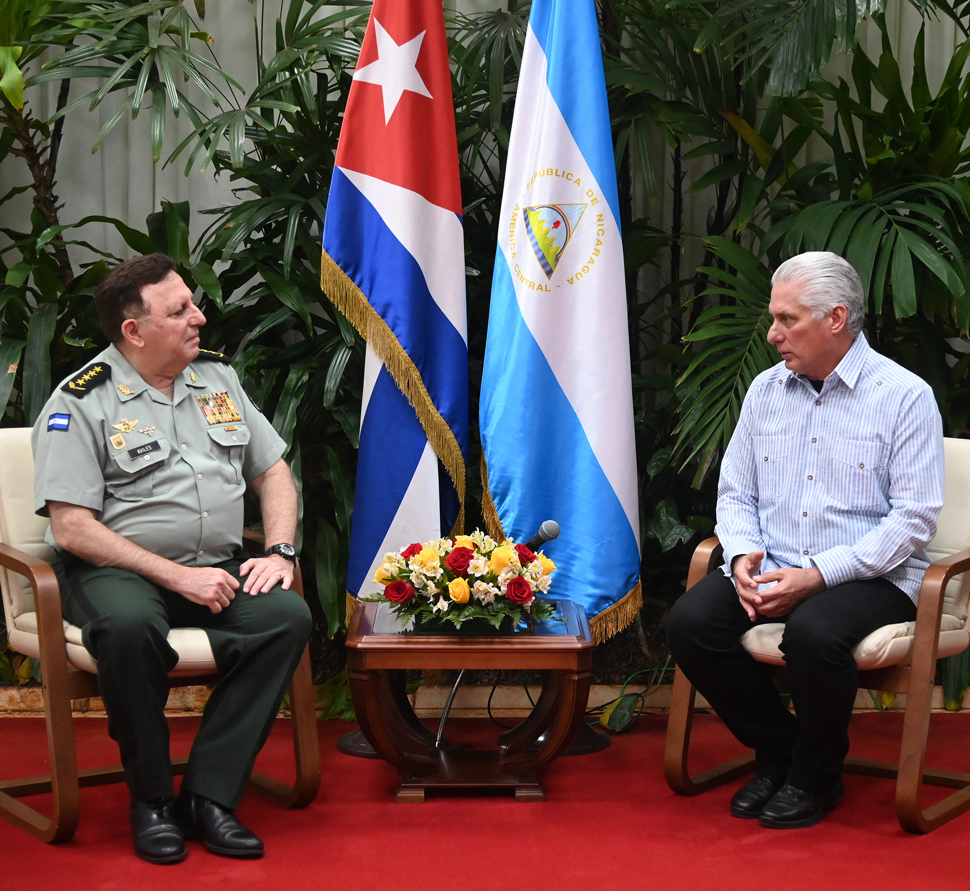 El Primer Secretario del Comité Central del Partido y Presidente de la República, Miguel Díaz-Canel Bermúdez, sostuvo un cordial encuentro en el Palacio de la Revolución, con  el General de Ejército, Julio César Avilés Castillo, Comandante en Jefe de las Fuerzas Militares del Ejército de la República de Nicaragua.