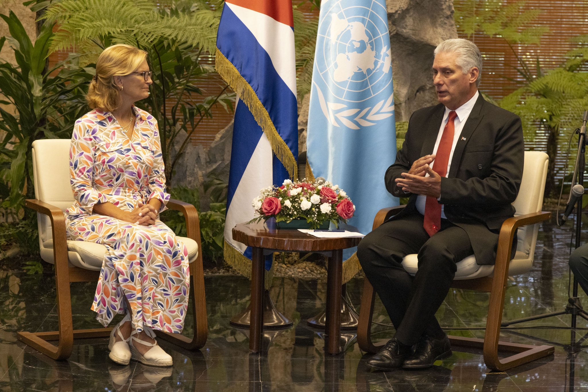 “Para nosotros es un placer recibirla en Cuba”, dijo el Primer Secretario del Comité Central del Partido Comunista de Cuba y Presidente de la República, Miguel Díaz-Canel Bermúdez, al dar la bienvenida en el Palacio de la Revolución, a la Excma Sra. Doreen Bogdan-Martin (UIT).