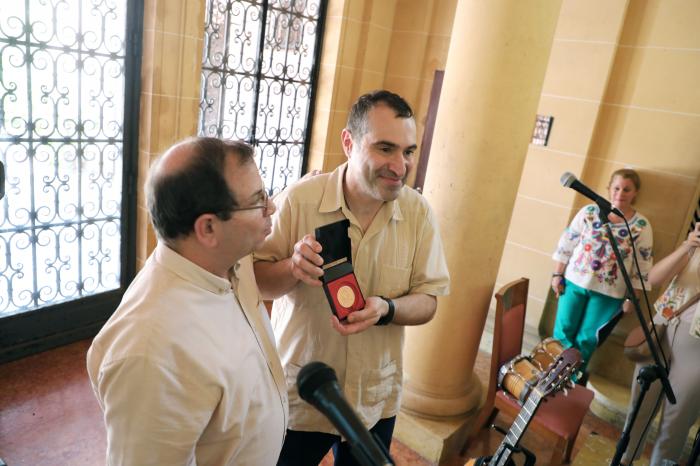 En el acto, el Héroe de la República entregó el sello conmemorativo 65 Aniversario del Instituto de Amistad con los Pueblos a Michel Hurto, presidente de la Agencia de Intercambio Cultural y Económico con Cuba (AICE), organizador del European Convoy Primero de Mayo, y presidente de la empresa mixta BioCubaCafé, por dedicar gran parte de su vida a estrechar lazos de solidaridad con Cuba.