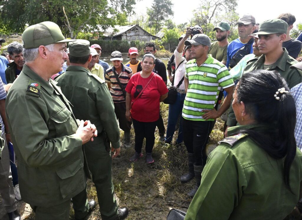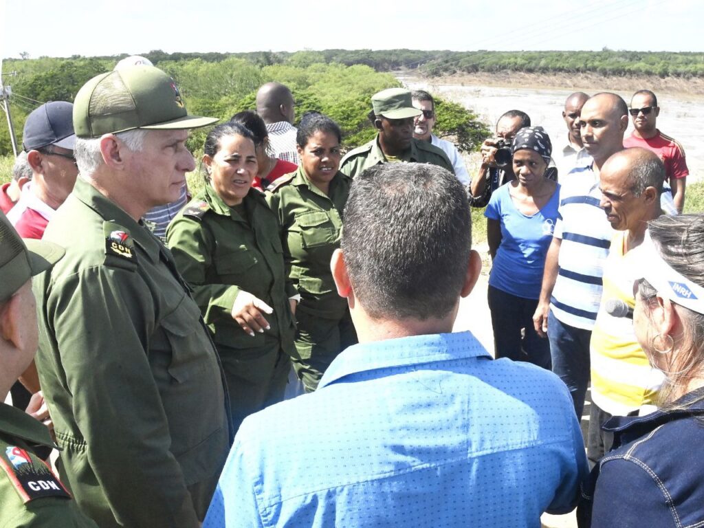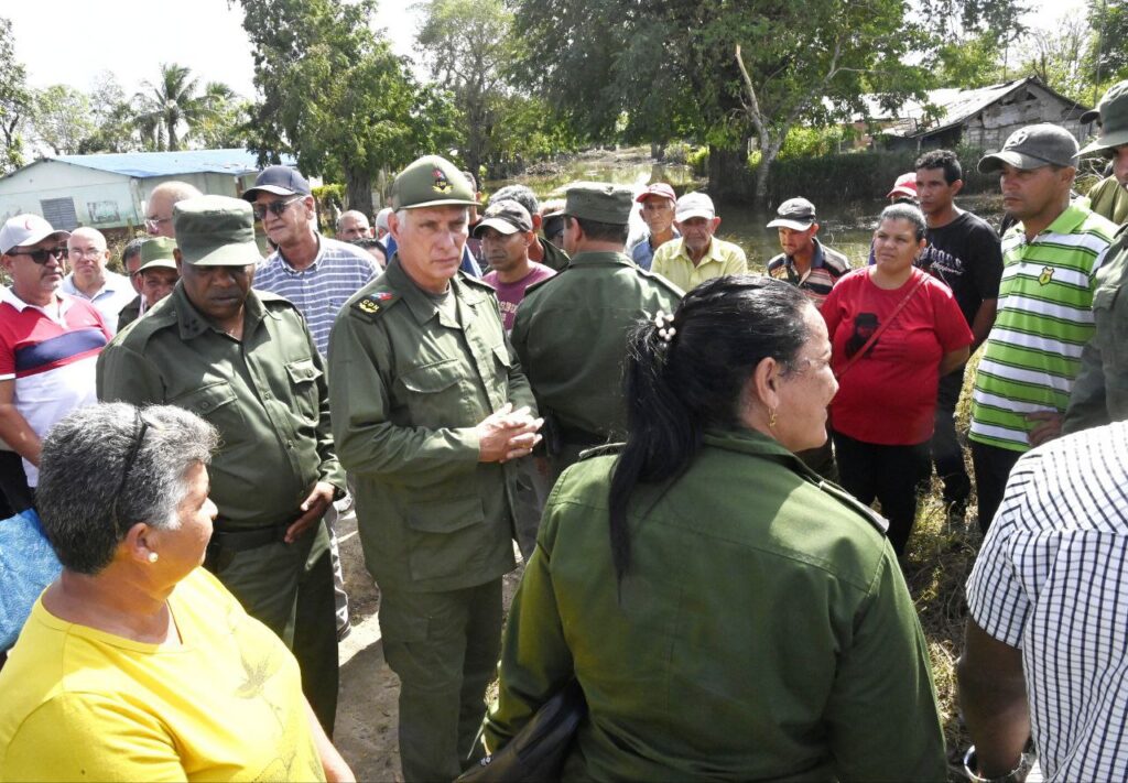 Mientras algunos sacaban colchones, refrigeradores y escaparates a secar, y otros pobladores llegaban del centro de evacuación, el mandatario arribó al barrio Camilo Cienfuegos del poblado Cauto Embarcadero, perteneciente al municipio Río Cauto.