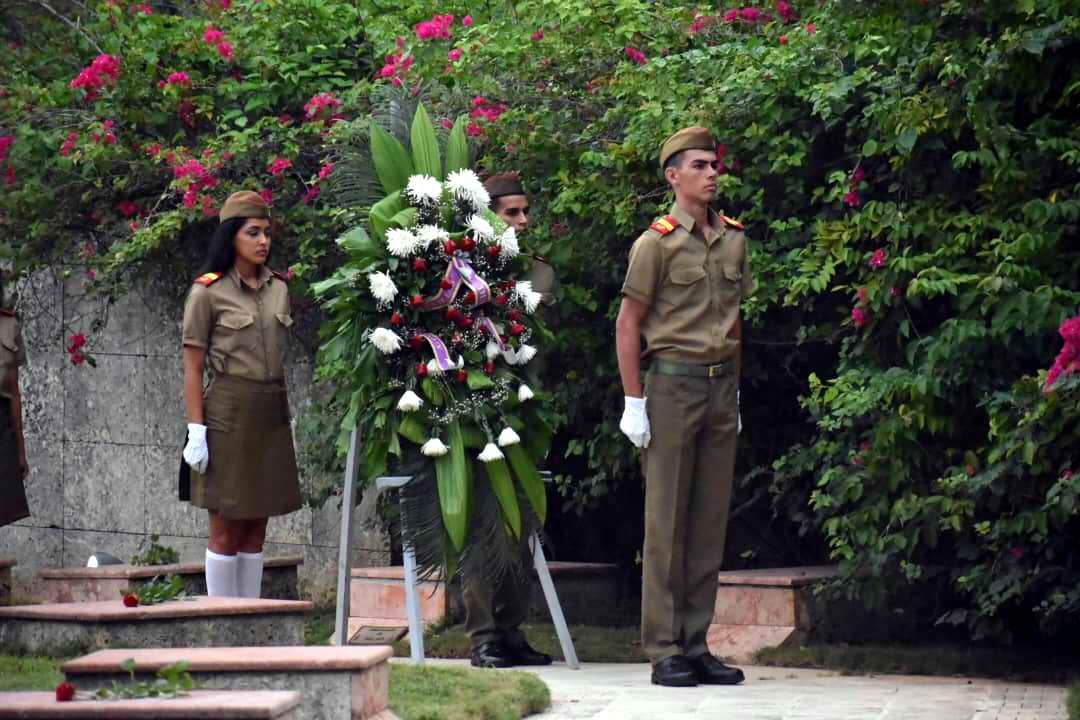 Una ofrenda floral a nombre del pueblo de Cuba, al lado derecho de la llama eterna, constituyó el reconocimiento perpetuo a los héroes de la gesta encabezados por el galeno argentino.