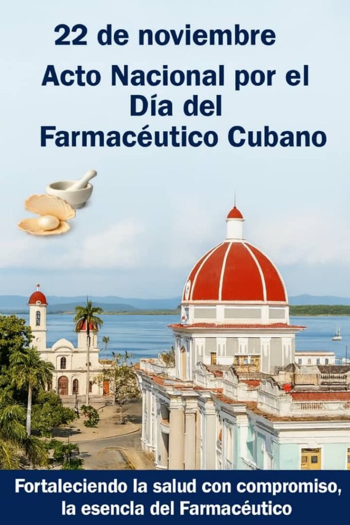 La XIII Jornada Nacional por el Día del Farmacéutico Cubano iniciará este viernes 21 de noviembre y se extenderá hasta el venidero día 23 en el Hotel Pasacaballos de Cienfuegos, donde sesionará Farmacién 2025, Jornada Científica del Capítulo cienfueguero de la Sociedad Cubana de Farmacia como parte del acto nacional por el Día del Farmacéutico Cubano que tendrá lugar el sábado 22 de noviembre en el Teatro Tomás Terry de la Perla del Sur.