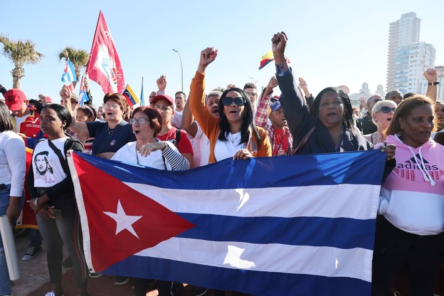 En la manifestación de pueblo, que tuvo lugar en la Tribuna Antiimperialista de La Habana, frente a la embajada de Estados Unidos, cientos de capitalinos, en nombre de todo el pueblo cubano, denunciaron la agresión imperialista, perpetrada con el propósito de apoderarse de los recursos naturales de la región.