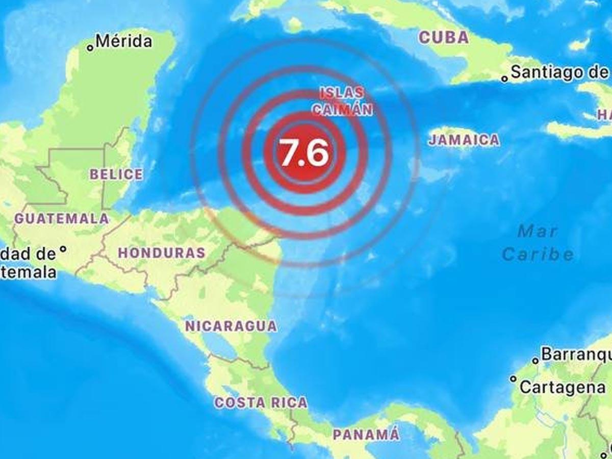 El temblor ocurrió a las 18:23 hora local; los servicios sismológicos inicialmente hablaron de 8,0 grados de magnitud en la escala abierta de Ritcher, luego degradaron la intensidad del fenómeno y ubicaron su epicentro a 205 kilómetros al suroeste de la isla de Gran Caimán.