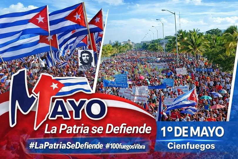 Cienfuegos, Cuba.- Con más colorido, pancartas, iniciativas y convicción revolucionaria desfilarán trabajadores de la provincia cubana de Cienfuegos, este Primero de Mayo, por la Plaza frente al lindo malecón enarbolando el lema central La Patria Se Defiende.