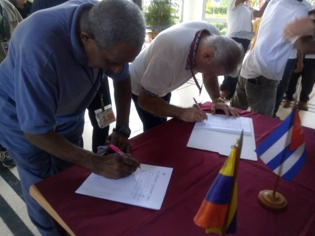 La sede del MITRANS en La Habana, fue el escenario de inicio del proceso de recogida de firmas a favor de la paz y de la soberanía de la patria bolivariana, así como el reconocimiento a la legitimidad del gobierno encabezado por el presidente Nicolás Maduro.