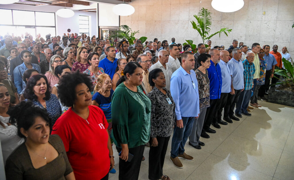 Trabajadores del Palacio de la Revolución se unieron este jueves al movimiento “Mi firma por la Patria”, una iniciativa que recorre todo el país como expresión de reafirmación patriótica y defensa de la soberanía nacional. El Primer Ministro Manuel Marrero encabezó la actividad, acompañado por el Secretario del Consejo de Ministros, General de División José Amado Ricardo Guerra, ambos miembros del Buró Político, así como vice primeros ministros y cuadros del Gobierno.